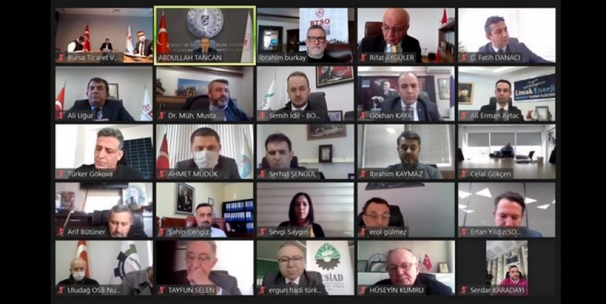 Bursa Ticaret ve Sanayi Odası (BTSO), salgın döneminde sektörel istişare toplantılarına devam ediyor. Video konferans yöntemi ile düzenlenen Enerji Sektörü İstişare Toplantısı, Enerji ve Tabii Kaynaklar Bakan Yardımcısı Abdullah Tancan’ın katılımıyla gerçekleştirildi. BTSO Yönetim Kurulu Başkanı İbrahim Burkay’ın moderatörlüğünde yapılan toplantıya BTSO Meclis Başkanı Ali Uğur, EPDK Başkan Yardımcısı Hacı Ali Ulutaş, TEİAŞ Genel Müdürü Orhan Kaldırım, BTSO Enerji Konseyi Başkanı Erol Dağlıoğlu katıldı. Sektör temsilcilerinin büyük ilgi gösterdiği toplantıda Bakan Yardımcısı Abdullah Tancan, sanayicilerden gelen güncel soru ve sorunlarla ilgili bilgilendirmede bulundu.