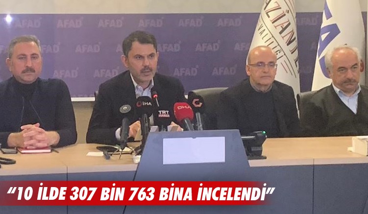 Kahramanmaraş merkezli depremlerde, çok sayıda binanın yıkıldığı ya da hasar gördüğü Gaziantep’e gelen Çevre, Şehircilik ve İklim Değişikliği Bakanı Murat Kurum toplantı düzenledi. Gaziantep AFAD Koordinasyon Merkezi’ndeki toplantıya Bakan Kurum’un yanı sıra, eski bakanlar Mehmet Şimşek ve Abdülhamit Gül, Gaziantep Valisi Davut Gül, İl Emniyet Müdürü Mustafa Emre Başbuğ, İl Jandarma Komutanı Tuğgeneral Hidayet Arıkan, askeri erkan, AFAD yetkilileri ve kurum müdürleri katıldı. Bakan Kurum 10 ilde 307 bin 763 binanın incelendiğini söyleyerek, Cumhuriyet tarihinin en büyük afet konutu seferberliğini başlatarak, 1 yıl içerisinde tamamlayacaklarını ifade etti.