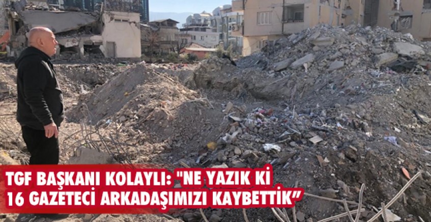 Asrın felaketi olarak gösterilen, 10 ilde yıkıma sebep olan 7.7 ve 7.6'lık Kahramanmaraş depreminin ardından bölgeye giderek incelemelerde bulunan TGF Başkanı Nuri Kolaylı, depremin etkili olduğu illerde yaşayıp görev yapan 16 gazetecinin hayatını kaybettiğini söyledi. Kolaylı yaptığı açıklamada, "Depremde şu ana kadar 16 gazeteciyi kaybettik. En büyük kayıp 7 gazeteci ile Adıyaman’da. Halen enkaz altında olan gazeteciler var. Dualarımız onlar için" dedi.