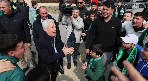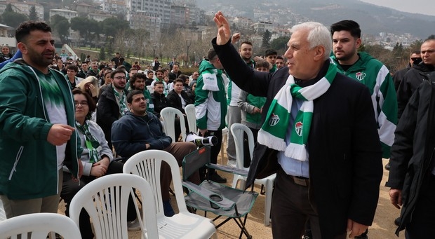 Başkan Bozbey’de Kültürpark Eski Atatürk Stadyumu’nda taraftarlarla birlikte maçın heyecanına ortak olurken, Bursasporlu taraftarlar tarafından tezahüratlarla karşılandı.