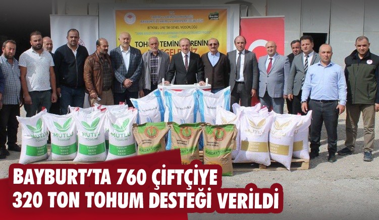 760 çiftçiye 320 ton tohum desteği verdiklerini bildiren Bayburt İl Tarım ve Orman Müdürü Selami Ersen, "Bakanlığımız tarafından yürütülmekte olan Tarım Arazilerinin Etkinleştirilmesi projesi dahilinde ilimizde 320 ton buğday dağıtımı yapmaktayız. Bayburt şartlarına uygun olan soğuğa dayanıklı cinsleri tespit ederek, müracaatları aldık. İlimizde bugün itibariyle müracaat eden 760 çiftçimize tohum desteği vereceğiz. Yüzde 50 katkılı olacak bu, çiftçimiz fatura bedelinin yüzde 50'sini tarım kredi kooperatiflere ödemek şartıyla tohumlarını temin edecekler. Bu dönemde yüksek verimi olan tohumları tercih ettik. Bayburt iklimine uygun tohumların tespitini yaparak elde edilen verilerle tercihlerimizi yaptık" diye konuştu.