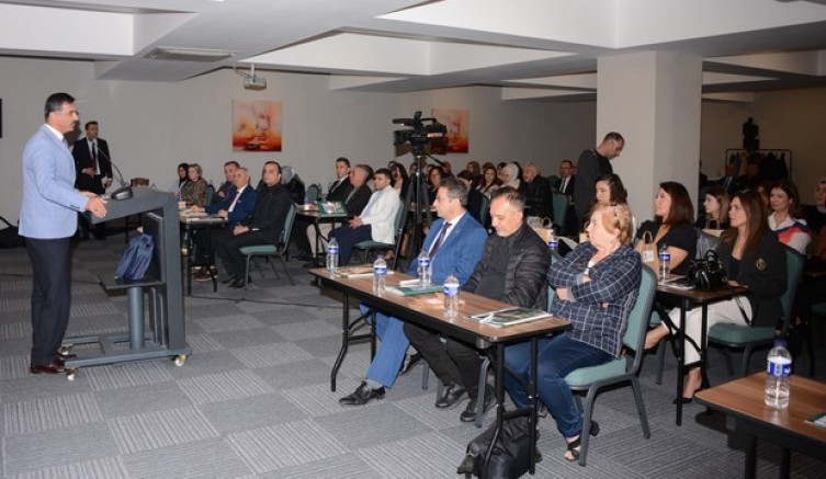 Protokol Kuralları ve Kamuda Uygulama Alanları konulu eğitimde sunum yapan Fatih Arslan, protokolün tanımı, önde gelim-öncelik hakkı, protokolün uygulama alanları, düzen, nezaket, saygı ve modern adabı muaşeret kuralları hakkında bilgiler verdi.