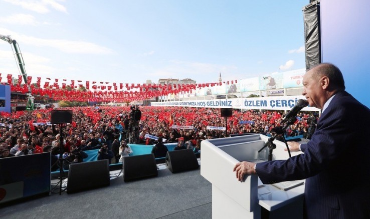 Terörsüz Türkiye için her adımı ölçüp biçip olan göre hareket ettiklerini ve Türkiye’nin ehil kadrolar tarafından yönetildiğini vurgulayan Erdoğan; "İkinci Dünya Savaşı sonrasında kurulan küresel nizam kökten çatırdıyor. Yıllardır konforlu bir coğrafyanın tadını çıkaran ülkeler, ilk defa bizim yıllardır uğraştığımız meselenin çok küçük bir kısmıyla burun buruna gelmeye başladılar. Yaptığımız eleştirilen artık Batı dünyasında da karşılık bulduğunu görüyoruz. Bugün Batılı liderler sistemin sorunlarından bahsediyor. Bizi acımasızca eleştirenler bugün bize hak veriyorlar. Aynı durum Suriye için de geçerlidir. Oradaki mazlumlara sahip çıktığımız için ‘Türkiye orta doğu bataklığına saplanıyor, yalnızlaşıyor’ dediler. Suriye’de zalim rejim devrildi. Türkiye’nin çok yakın dostu bir hükümet geldi. Ülkemizin de güçlü desteğiyle Suriye hızla toparlanıyor. 13,5 yıllık çatışmaların ardından güvenlik ve istikrar yeniden sağlanıyor. Terör örgütleri Suriye rejimi tarafından yavaş yavaş çıkartılıyor. Türkmen kardeşlerimiz aynı şekilde yeni yönetimde çok önemli görevler üstleniyor. DEAŞ denilen terör örgütü ile mücadele eskisinden daha güçlü, kararlı hale geliyor. Bölgemizde her türlü terörün kökü kurutuluyor. Ülkemiz için endişe kaynağı olan sorunlar birer birer çözüme kavuşuyor. Halep’te, Hama’da, Afrin’de, İdlib’te milyonlar cıvıl cıvıl Türkçe konuşuyor. Türkiye’yi konuşuyor. Bize hayır dualar ediyor. İnşallah çok daha iyi olacak. Suriye’nin kuzeyindeki tehdit ortadan kalkınca, Suriye bölgede refah alanına dönüştükçe, hepimiz istifade edeceğiz. Bunun için önce 86 milyon olarak birbirimize kenetleneceğiz. Hep beraber Türkiye olacağız. Unutmayın İslam kardeşliği ortak paydasında bölgedeki halklarla bir araya geleceğiz. Sabırlı, soğukkanlı, oyuna gelmeyecek, fitne ateşine karşı uyanık olacağız. Kutuplaşma hem bize hem bölgemize acıdan başka bir şey getirmez. Sadece gözyaşı getirir. Hükümet olarak, AK Parti ve Cumhur İttifakı olarak ne yaptığımızı çok iyi biliyoruz. Terörsüz Türkiye sürecinde attığımız her adımı ölçüp biçip ondan sonra harekete geçiyoruz. Çok zorlu süreçleri çok başarılı bir şekilde yönettik. Şundan milletimiz emin olsun. Türkiye ehil kadroların elindedir. Rabbim bizi hizmet yolundan ayırmasın" dedi.
