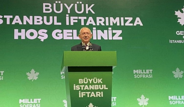 Millet İttifakı'nın Cumhurbaşkanı adayı ve CHP Genel Başkanı Kemal Kılıçdaroğlu, Gelecek Partisi İstanbul İl Başkanlığı’nın ‘Millet Sofrası’ iftar programına katıldı. Programa Kılıçdaroğlu'nun yanı sarı, Gelecek Partisi Genel Başkanı Ahmet Davutoğlu, Saadet Partisi Genel Başkanı Temel Karamollaoğlu, İstanbul Büyükşehir Belediye Başkanı Ekrem İmamoğlu ve çok sayıda davetli katıldı.