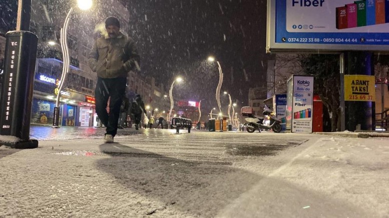 Bolu’da aralıklarla devam eden kar yağışı, akşam saatlerinde şehir merkezinde etkili olmaya başladı. Yaklaşık 2 gün önce Bolu’nun yüksek kesimlerinde başlayan kar yağışı, akşam saatlerinde şehir merkezinde de beyaz örtü oluşturdu. Vatandaşların yoğun olarak kullanıldığı İzzet Baysal Caddesi’nde, kar yağışı güzel görüntüler oluşturdu. Aralıklarla devam eden yağışın sabah saatlerine kadar sürmesi beklenirken, şehir merkezinde kar kalınlığı 3 santimetreye ulaştı.