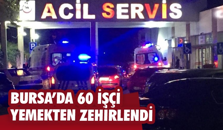 Organize Sanayi Bölgesinde bir tekstil fabrikasında 60 civarında işçi akşam yemeğinden zehirlendi. Akşam yemeğinden kaynaklandığı düşünülen zehirlenme olayında işçilerin bir kısmı Şehir Hastanesine, bir kısmı Çekirge Devlet Hastanesine kaldırıldı. Çekirge Devlet Hastanesine kaldırılan işçilerden birkaçının durumunun ağır olduğu bilgisi edinildi.