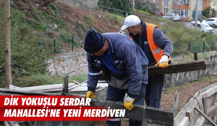 İzmit Belediyesi Fen İşleri Müdürlüğü ekipleri, Serdar Mahallesi Çayır Sokak ve Sedat Şanbay Sokak’ta merdiven çalışmalarına devam ederken, Er Sokak’ta da yeni merdiven yapımına başladı. Dik yokuşu ile yaya ulaşımının zor olduğu sokakta çalışmalarını sürdüren ekipler, kısa sürede bölgeye yeni merdiven kazandıracak. Hafta sonu itibariyle çalışmalara başlayan Fen İşleri Müdürlüğü ekipleri, merdiven yapılacak alanın iskeletini tamamladı. 50 metre uzunluğunda ve yaklaşık 1,5 metre uzunluğunda olacak merdiven için 11 metreküp beton kullanılacak.