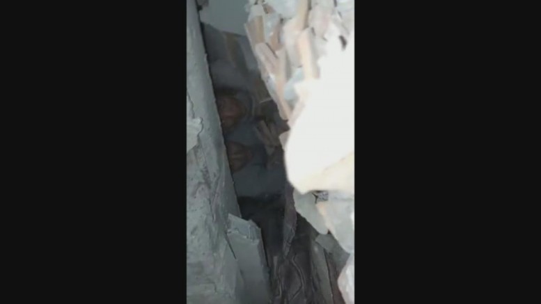 Enkaz altında görüntülenen bir genç, "Ablam, kardeşim ve ben buradayız. Kardeşim tepki veriyor. Ses geliyor "dedi.