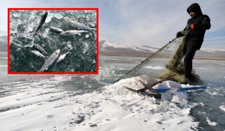 Hava sıcaklığının eksi 20 derecelere kadar düştüğü Çıldır Gölü'nün yüzeyinde, yaklaşık 20 santimetre kalınlığında buz kütlesi oluştu. 42 metre derinliğinde olan Çıldır Gölü'nde 15 metre aralıklarla buzları delen balıkçılar, deldikleri yerlerden ip yardımıyla çektikleri ağları atarak balık avlıyor. Geçimini balıkçılıkla sağlayan Yakup Topkaya, eksi 20 derece soğukta saatlerce uğraşarak göle serdiği ağların ardından bir hafta sonra aynı bölgeye gelerek attığı ağları çekiyor.