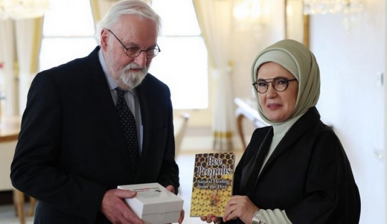 Cumhurbaşkanı Recep Tayyip Erdoğan'ın eşi Emine Erdoğan, Uluslararası Apiterapi Federasyonu yöneticileri ve federasyonun farklı ülkelerden temsilcilerini Vahdettin Köşkü'nde kabul etti. Federasyon Başkanı Dr. Ali Timuçin Atayoğlu ve beraberindeki heyet, Emine Erdoğan'a federasyonun çalışmaları hakkında bilgiler aktardı. Görüşmede, Sağlık Bakan Yardımcısı Doç. Dr. Tolga Tolunay da yer aldı. Kabulde Emine Erdoğan'a, Macar Apiterapi Derneği Başkanı Janos Körmendy-Racz tarafından, geleneksel tıp uygulamaları çerçevesinde arı ürünlerinin tıp alanında kullanılması amacıyla apiterapi çalışmalarının Türkiye'de yaygınlaştırılmasındaki katkıları dolayısıyla "Dr. Beck Apiterapi Ödülü" takdim edildi.