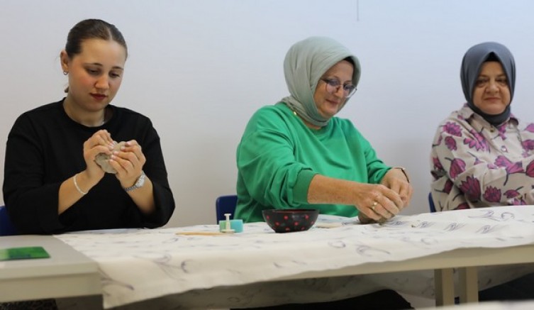 Hem el becerilerini geliştiren hem de sanat yoluyla kendilerini ifade etmenin keyfini yaşayan vatandaşlar, seramik çalışmaları sırasında birbirleriyle iletişim kurarak üretmenin mutluluğunu paylaştı.