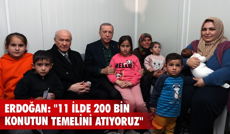 Mart ayı içerisinde depremden etkilenen 11 ilde 200 bin konutun temelinin atılması için çalışmaların başlayacağını söyleyen Cumhurbaşkanı Erdoğan, “Burada altyapısı kontrol edilerek, güvenliği temin edilen yerlere şu anda elektrik, doğalgaz ve su verilmeye başlandı. Şehir genelindeki ulaşım birkaç noktadaki trafiği aksatmayacak derecedeki çalışma haricinde sıkıntısız şekilde sağlanıyor. Deprem bölgesinin tamamında 10 bin konteyner kurulumu tamamlandı, 65 bin konteynerin kurulumu sürüyor. Bu rakamı 100 bine çıkartacak ve ihtiyaç halinde de 200 bine kadara yükseltebileceğiz. Kahramanmaraş’taki konteyner kurulacak alanlarda çalışmalar tüm hızıyla devam ediyor. Kalıcı konutlarla ilgili somut adımları atma aşamasına geldik. Kahramanmaraş’ta mart ayı içerisinde 45 bin 67 konutun temelini atarak inşasına başlıyoruz. Sadece mart ayı içinde 11 ilimizde 200 bin konutun inşası için ilk adımı atıyoruz. Takip eden aylarda bu rakamı Kahramanmaraş ile birlikte deprem bölgesinin tamamında ne kadar olması gerekiyorsa o seviyeye kadar çıkaracağız. İnşallah bir seneye kadar tamamı, gerçekleşecek olan bu inşa ve ihya hareketimizi ben inanıyorum ki bundan önce geçirdiğimiz deprem afetlerinde nasıl gerçekleştirdiysek burada da gerçekleştireceğiz” diye konuştu.