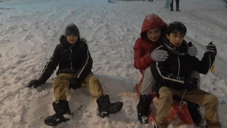 Gecenin bir yarısı ellerine aldıkları poşetlerle karda kayan çocukların kar yağışı ile ilgili sözleri tebessüm ettirdi.