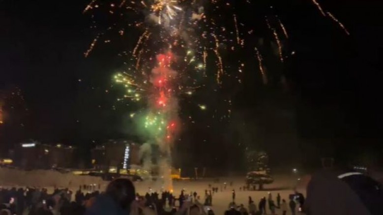 Oteller Bölgesi’nde ise binlerce kişi havai fişek gösterilerini izledi, meşalelerle yeni yıla coşkuyla girdi.