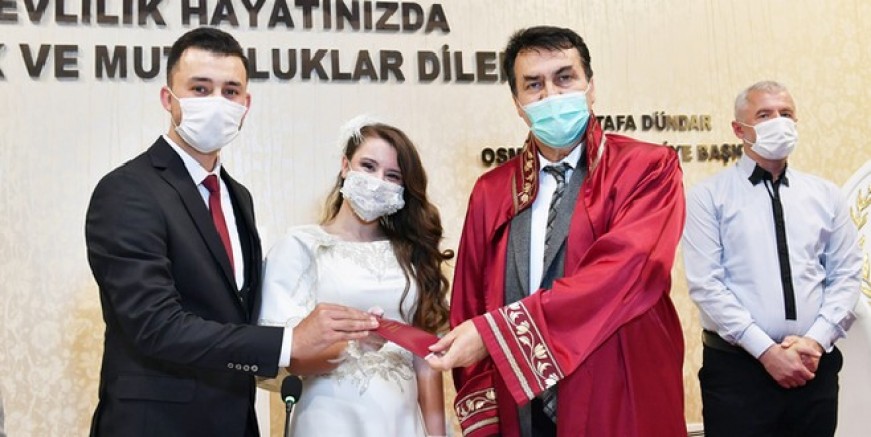 Koronavirüs salgını nedeniyle nikahları temizlik, sosyal mesafe ve maske kurallarına uygun bir şekilde gerçekleştirdiklerini belirten Osmangazi Belediye Başkanı Mustafa Dündar, “Pandemi sürecinde nikahlarımız biraz buruk geçiyor. Fakat, insan sağlığının her şeyden daha önemli olduğunu unutmamamız gerekiyor. Osmangazi Belediyesi olarak Bursa’da en fazla nikâh kıyan belediyeyiz. 2020 yılında 6 bin 52 çiftimizin mutluluğuna ortak olduk. Bu evliliklerin arasında yabancı uyruklu vatandaşlarımız da var. Aile kuran tüm çiftlerimize mutluluklar diliyorum” dedi.