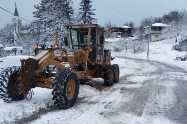 Gemlik Belediyesi ekipleri, ilçenin yüksek kesimlerinde dün akşam saatlerinden itibaren etkili olan kar yağışına karşı yoğun bir mücadele yürütüyor. Cihatlı, Şahinyurdu, Umurbey, Haydariye, Feyziye, Şükriye, Güvenli, Adliye ve Hamidiye köylerinde yolların kapanmaması için greyderlerle kar küreme ve tuzlama çalışmaları aralıksız sürdürülüyor.