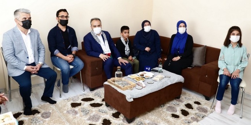 Bursa Büyükşehir Belediye Başkanı Alinur Aktaş, Ramazan Bayramı ziyaretleri kapsamında 5 yıl önce Bursa’ya gelen doktora öğrencisi Filistinli Yasir Hamad ve ailesini evinde ziyaret etti.