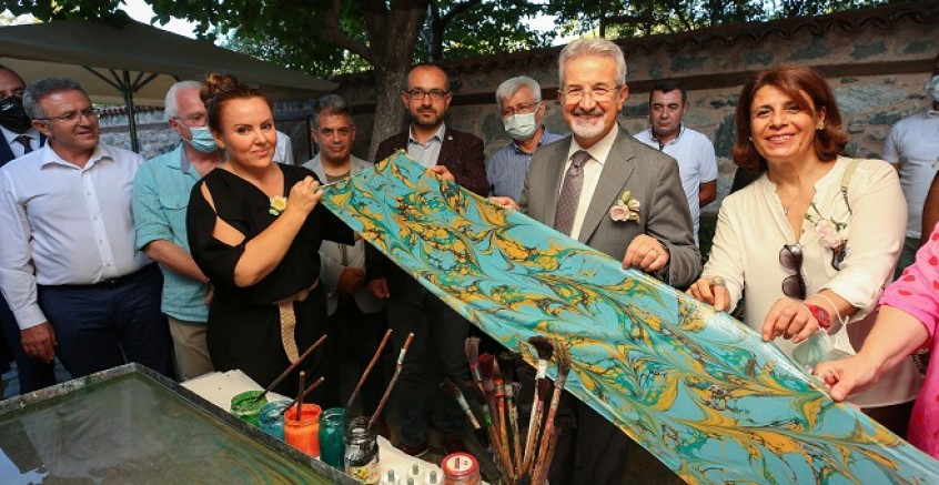 Etkinlikte ayrıca İpek Evi’nin bahçesinde iki ayrı atölye çalışması da yapıldı. Emine Elmas’ın ipek kumaş üzerine ebru sanatı uygulamasına ilişkin atölye ile Nadide Yakıt’ın gerçekleştirdiği ipek koza çiçek ve aksesuar yapımı atölyesi ilgi çekti. Atölye çalışmasını izleyen Başkan Erdem de ipek kumaş üzerine ebru yaptı. İki katlı mekânı gezen Başkan Erdem ayrıca, üst katta sergilenen dokuma tezgâhlarında da ipek dokuma denemesi yaptı.