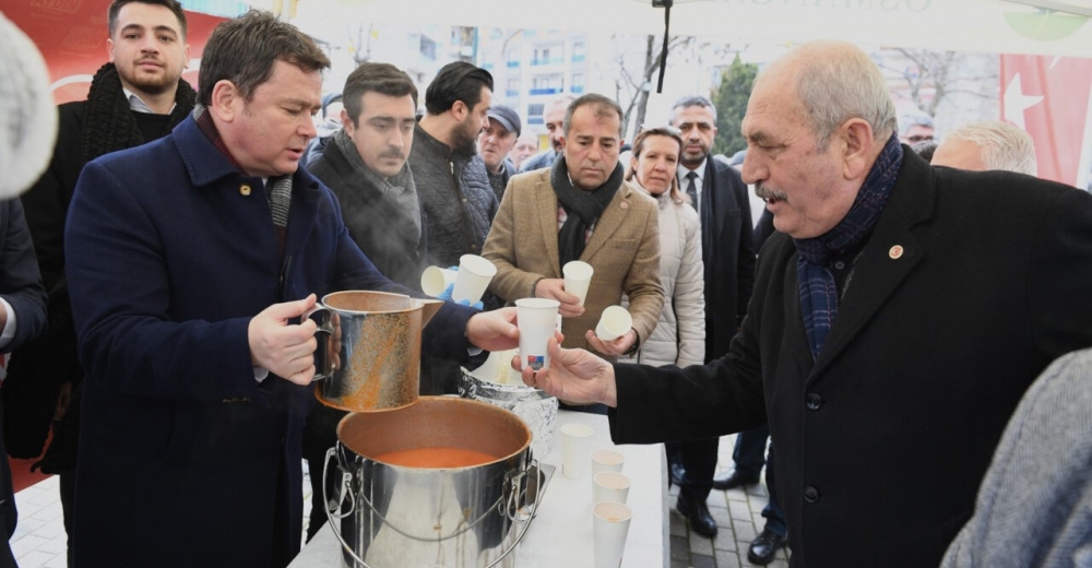 Mahalle ziyareti sırasında vatandaşlara çorba ikramında bulunan Başkan Aydın, soğuk kış gününde hem gönülleri hem de bedenleri ısıttı.