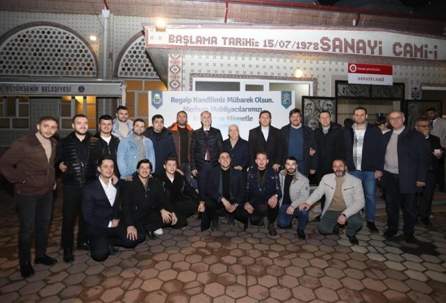 Akşam namazı sonrası başlayan mevlitte, merhum mobilyacılar dualarla yad edildi. Yatsı namazı çıkışında da cemaate helva ikramı yapıldı. İnegöl Belediye Başkanı Alper Taban, AK Parti İnegöl İlçe Başkanı Mustafa Durmuş ve Mobilyacılar Odası Başkanı Özcan Ayhan da parti ve oda yöneticileriyle beraber mevlide katıldı. Namaz sonrası vatandaşların kandilini kutlayan Başkan Alper Taban, “İslam alemi için önemli gün ve gecelerin bir arada bulunduğu mübarek üç ayların ikinci gecesinde Regaip Kandiline erişmenin huzuru içerisindeyiz. İçinde; Regaip, Miraç, Berat ve Kadir gecelerini bulunduran mübarek üç aylar, İslam dünyası için sevinç, bereket ve mağfiret mevsimidir. İnşallah bu yıl da bu duyguları yaşadığımız bir mevsimi hep beraber görürüz. Bu vesileyle bu akşam Mobilyacılar Odamız ile birlikte hem merhum mobilyacılarımız adına mevlit okutup hem de vatandaşlarımıza ikramlarda bulunmak istedik. Tüm İslam aleminin kandilini kutluyorum” dedi.