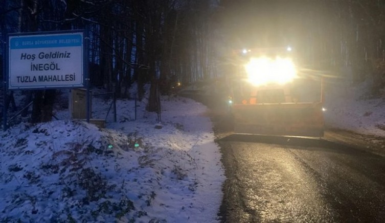 İnegöl’de karla mücadele için 6 bölgede faaliyet programını hazırlayan İnegöl Belediyesi, toplamda 126 personel ve 30 iş makinesi ile teyakkuzda. Cumartesi gecesi sabaha kadar kırsal bölgelerde greyderle kar küreme ve tuzlama çalışması yapılırken, İnegöl’de kapalı köy yolu bulunmadığı bildirildi. Şehir içinde de buzlanma olan bölgelerde tuzlama yapıldı. TOKİ, Alanyurt ve OSB gibi buzlanmanın çok olduğu ve rampaların yoğun olduğu yerlerde ekipler yollarda önlemlerini aldı.
