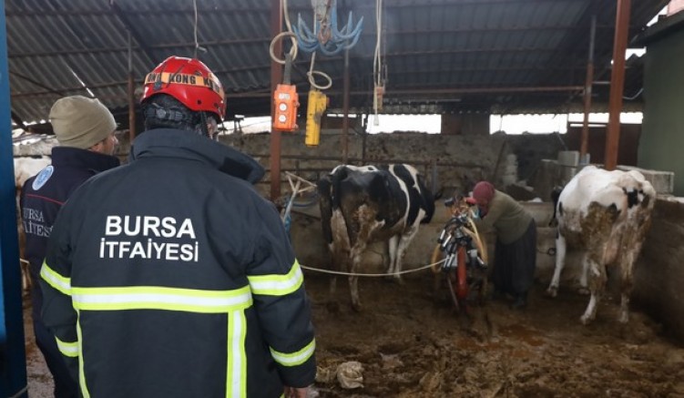 Bursa Büyükşehir Belediyesi itfaiye ekipleri de hemen bir jeneratörle Özkan ailesinin ahırına gitti. Jeneratör ‘itfaiye ekipleri tarafından’ çalıştırılırken, Özkan’ın eşi Esma Özkan da sağımı yaptı. Ayrıca Özkan’ın arızalı olan jeneratörü de tamir edilmek üzere itfaiye ekipleri tarafından alındı.