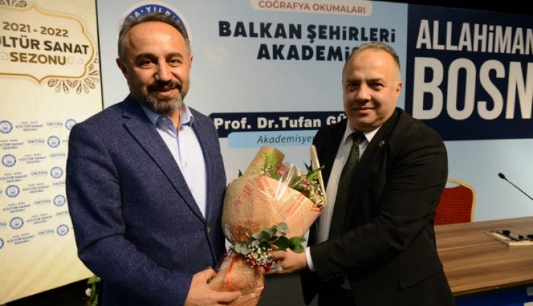 Toplamda 8 hafta sürecek akademinin 6’inci haftasında konuk Prof. Dr. Tufan Gündüz ‘Allahimanet Bosna’ konu başlığı ile Bosna şehri üzerine konuştu. Boşnakların hikâyesinin Osmanlı ile başladığını ifade eden Tufan Gündüz, “İslamlaşma ile birlikte Katolik ve Ortodoksların arasına sıkışmış olan Boşnaklar birinci sınıf vatandaş durumuna yükselmiş oldular. Çünkü İslamlaşma ile birlikte Boşnaklar Osmanlılaştı ve yönetici kadrolarını oluşturdu. Bu yönetici kadroyu oluşturmak Sırp ve Hırvatlara karşı avantajlı bir duruma soktu Boşnakları. Mal, mülk sahibi ve tımar sahibi ve yönetici olabilmekteydiler. Bir yandan Osmanlı gölgesinde kendi halklarını koruyabiliyorlar diğer yandan da mal mülk sahibi olabiliyorlardı. Bu da vatandaşların Müslümanlığını hızlandırdı. Boşnakların müslümanlaşması 100 yıl sürdü. Bosna’nın bu kadar kısa sürede İslamlaşması Osmanlı sayesinde oldu” dedi. Bosna anılarından bahsedip şehre dair analizler yapan Gündüz, seminer sonrası katılımcılardan gelen soruları yanıtladı. Barış Manço Kültür Merkezi'nde düzenlenen seminer Yıldırımlılardan tam not aldı. ‘Balkan Şehirleri Akademisi’nde önümüzdeki hafta Balkanlar Bölge Araştırmacısı Zeynep Duygu Coşkuner, ‘Tek Suçları Yunanistan’da Türk Olmak’ konu başlığı ile Batı Trakya Türk Azınlığı üzerine katılımcıları bilgilendirecek.