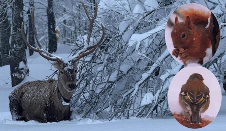 Öte yandan, Büyükşehir Belediyesi Ormanya Doğal Yaşam Parkı'nda karlar altında görüntülenen sincap ve kuşlar da renkli görüntüler oluşturdu.