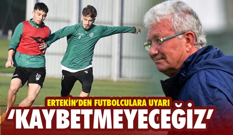 Bursaspor Teknik Direktörü İsmail Ertekin, futbolcularını sık sık uyarıyor. Tecrübeli çalıştırıcı, saha içinde oyunculardan mutlak ciddiyet isterken,"Kaybetmeyi kabul etmeyen bir takım oluşturacağız" cümlesini de idmanlarda sık sık tekrarlamaya devam ediyor. Saha içinde her türlü laubaliliğe engel olan Ertekin, maçlar esnasında da aynı ciddiyeti oyuncularından bekliyor. Düzcespor maçı öncesi yaptığı basın toplantısında da, "Kaybetmeyi kabul etmeyen bir takım oluşturacağız" cümlesini de sık sık tekrarlayan Ertekin, deplasmanda oynanacak olan Menemen EK maçında oyuncularının bu durumu taraftarına hissettirmesini de istiyor.