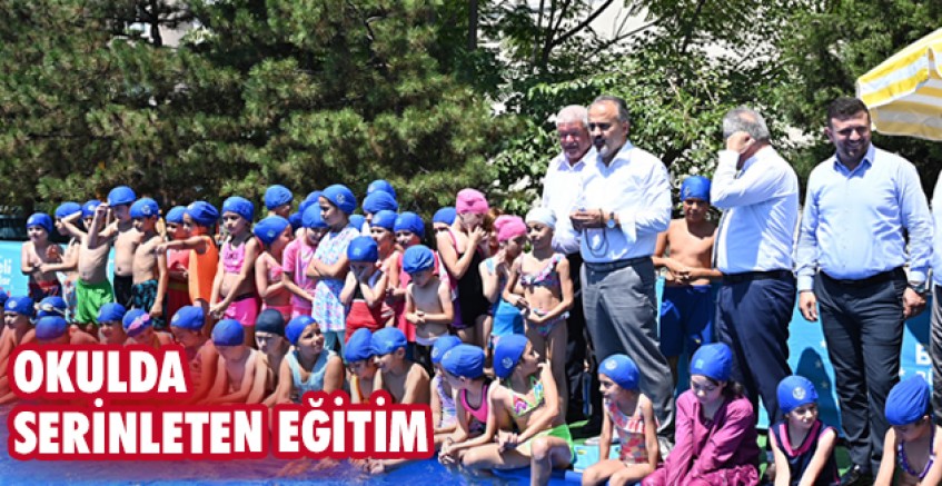 Bursa’nın sporda da marka kent olması, sporun tabana yayılarak 7’den 70’e herkesin sporla buluşması ve özellikle yeni neslin boş zamanlarını sporla iç içe geçirmesi için farklı projeleri hayata getiren Büyükşehir Belediyesi, yaz döneminde de okul bahçelerini havuzlarla renklendirdi. ‘Neşeli Havuzlar Mutlu Çocuklar’ projesi çerçevede; Osmangazi’de Lütfü Banuşoğlu İlkokulu ve Şehit Jandarma Uzman Çavuş İlyas Genel İlkokulu, Yıldırım’da Fevzi Çakmak İlköğretim Okulu ve Kestel’de Şehit Mustafa Kurt Ortaokulu bahçesine portatif yüzme havuzları kuruldu. Yarı olimpik yüzme havuzlarına yakın olarak 12x24 metre ebatlarında ve 1.20 metre derinliğindeki havuzların yanı sıra, aynı alanda çocukların yaz tatilini keyifli atmosferde geçirebilmeleri için oyun ve spor alanları oluşturuldu. 26 Ağustos’a kadar devam edecek proje çerçevesinde , uzman eğitmenlerle 6-13 yaş aralığındaki çocuklara ücretsiz yüzme eğitimi veriliyor.
