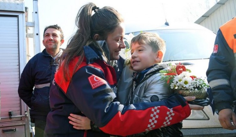 5 kişinin enkaz altından sağ olarak çıkarılmasını sağlayan ekipler, mesai arkadaşları ve aileleri tarafından alkışlarla karşılandı.
