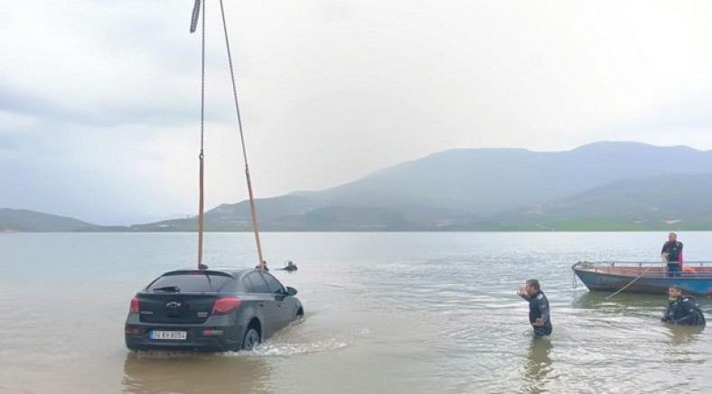 Otomobil baraj gölüne düştü