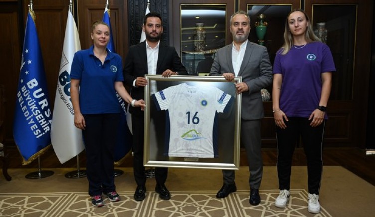 Yaklaşık 10 yıl önce Mudanya’da ilkokul 4. sınıftayken Antrenör Merve Yılmaz tarafından okullardan seçilerek hentbolla tanışan ve kısa zamanda ayakta alkışlanacak bir başarı hikâyesine imza atan Poyrazın Kızları, son 2 yıldır Bursa Büyükşehir Belediyespor Kulübü’nün formasını terletiyor. Büyükşehir çatısı altındaki henüz ikinci yıllarında Türkiye Şampiyonluğunu Mudanya’ya kazandıran sporcular, ayrıca okul sporlarında 4 Türkiye Şampiyonluğu elde ederek yakalanması güç bir başarıya da imza attılar. 26 Ağustos’ta başlayacak Süper Lig’e, biri Sırp, biri Karadağlı iki yabancı oyuncu transferiyle iddialı bir şekilde hazırlanan Poyrazın Kızları, sezon öncesi Büyükşehir Belediye Başkanı Alinur Aktaş’ı ziyaret etti. Ziyarette Antrenör Merve Yılmaz ile Büyükşehir Belediyespor Kulübü Başkanı Gökhan Dinçer’in de katıldığı ziyarette sporcularla sohbet eden Başkan Aktaş, yeni sezon için başarı dileğinde bulundu.