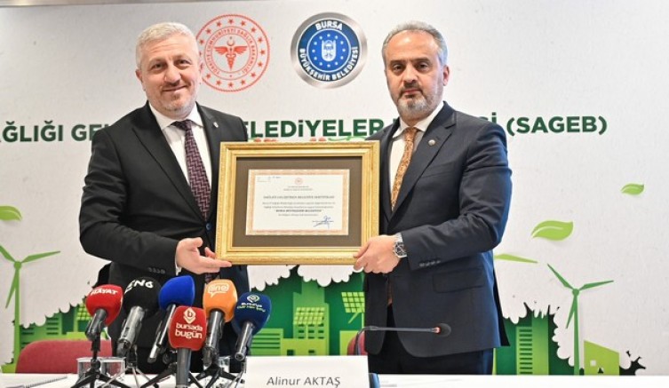 Bursa’yı geleceğe sağlıklı bir şekilde taşımak amacıyla ulaşımdan altyapıya, çevreden spora kadar her alanda önemli yatırımları hayata geçiren Bursa Büyükşehir Belediyesi, toplum sağlığını yakından ilgilendiren her konuda örnek adımlar atıyor. İhtiyaç duyulan noktalara aile sağlığı merkezleri kazandırılmasından sağlığa ambulans ve ekipman desteğine, evde bakım hizmetlerinden şehrin engelliler için de ulaşılabilir hale getirilmesine, madde bağımlılığıyla mücadeleden psikolojik destek gibi hizmetlere kadar sağlığa erişimin önündeki tüm engeller de kaldırılıyor. Bursa Büyükşehir Belediyesi tarafından sağlıklı şehir hedefiyle yapılan bu çalışmalar, Sağlık Bakanlığı tarafından belge ile ödüllendirildi. Sağlık Bakanlığı'nın sağlıklı şehir bilinci oluşturmak için başlattığı 'Sağlığı Geliştiren Belediye Belgesi' uygulaması kapsamında Bursa Büyükşehir Belediyesi, bu belgeyi almaya hak kazandı. Türkiye’de bu belgeyi alan ilk Büyükşehir Belediyesi olan, Bursa’da da bu belgeye layık görülen ilk belediye olan Büyükşehir Belediyesi’nin 001 numaralı belgesi, İl Sağlık Müdürü Dr. Fevzi Yavuzyılmaz tarafından Büyükşehir Belediye Başkanı Alinur Aktaş’a teslim edildi.