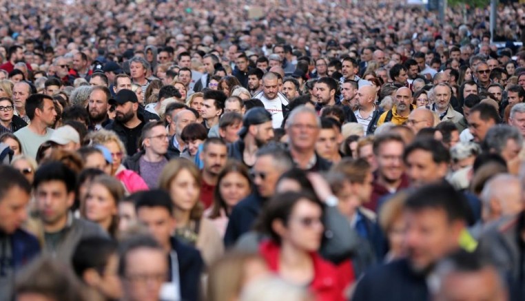 Sırbistan’ın başkenti Belgrad’da geçen hafta düzenlenen iki silahlı saldırının ardından “Sırbistan şiddete karşı” sloganıyla 50 binden fazla kişi sokağa inerek, hükümeti protesto etti.