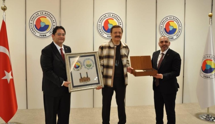 Ziyarette, ETB Yönetim Kurulu Başkanı Hakan Oral, TOBB Başkanı Rifat Hisarcıklıoğlu’na Borsa ve İl adına tescili alınmış olan Coğrafi İşaretli Ürünler ile üzerine TOBB , ETB ve Çifte Minareli Medrese işlemeli Coğrafi İşaretli Ürün olan Karnavas Bezinden yapılmış bir tablo takdim etti.
