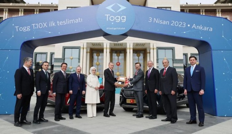 Türkiye'nin otomobili Togg'un teslimat süreci başladıktan sonra yerli otomobilin ilk teslimatı Cumhurbaşkanı Recep Tayyip Erdoğan'a ve eşine yapıldı. Anadolu rengindeki akıllı cihazın anahtarı Sanayi ve Teknoloji Bakanı Mustafa Varank tarafından Emine Erdoğan'a takdim edilirken, makam aracının anahtarı ise Türkiye Odalar ve Borsalar Birliği (TOBB) Başkanı Rifat Hisarcıklıoğlu tarafından Cumhurbaşkanı Erdoğan'a takdim edildi. Anahtarlar özel bir kutu içerisinde Erdoğan çiftine verildi.