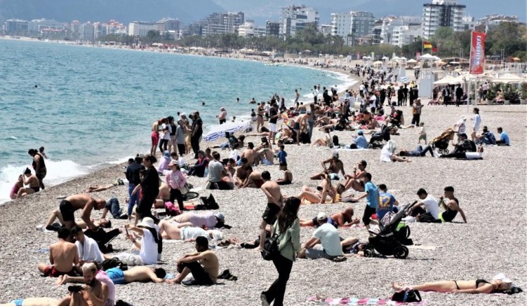 Antalya’da Ramazan Bayramı’nın 1’inci günü vatandaşlar, havanın parçalı bulutlu olmasına rağmen dünyaca ünlü Konyaaltı Sahili’ne akın ederek denizin keyfini çıkardı.