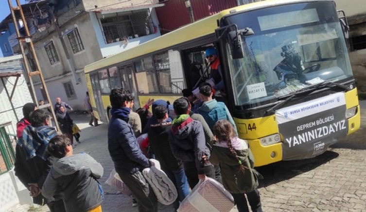 Bursa Büyükşehir Belediyesi’nin deprem yaralarını sarma çalışmaları kesintisiz devam ediyor. Büyükşehir Belediyesi’nin arama kurtarmada itfaiye, altyapı onarımında BUSKİ, sıcak yemek ve erzak dağıtımında BURFAŞ, ekmek temininde BESAŞ, su temininde Jeotermal A.Ş ve meyve temininde de Tarım Peyzaj A.Ş marifetiyle başlattığı seferberliğe, Burulaş da lojistik destekle katıldı. Bursalı gönüllülerden toplanan yardımları 20 sarı otobüsle Hatay merkeze ulaştıran Burulaş, bu otobüslerden 15’ini yardımların dağıtımı için Hatay’da bıraktı. Mahalle mahalle dolaşan sarı otobüsler, yardımları afetzedelerin ayağına kadar götürdü.